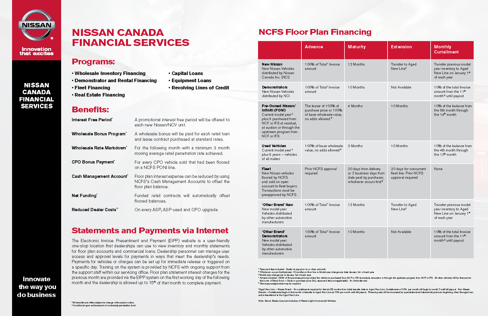 Spread Nissan Canada Financial Services brochure.